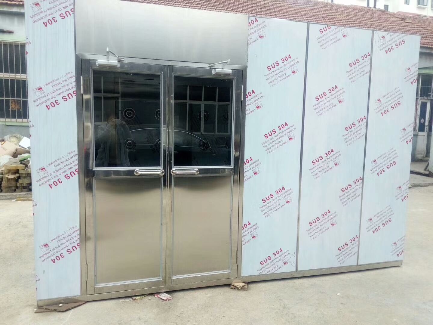 2、風淋室的尺寸根據使用現場尺寸決定,可定制,可做單開門、雙開門、自動門、卷簾門等;要求不同價格不同
